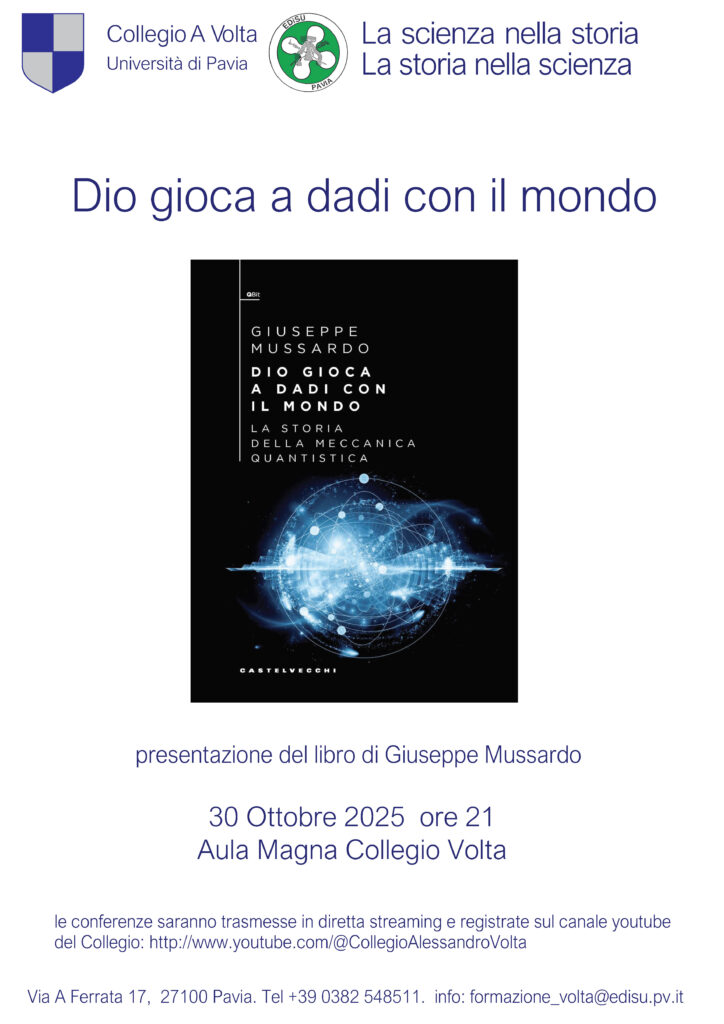Dio gioca a dadi con il mondo Aula Magna Collegio Alessandro Volta, Pavia. 30 Ottobre 2025 ore 21:00